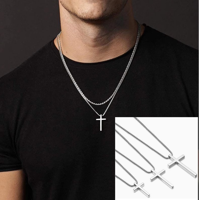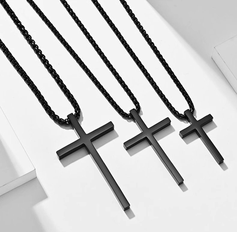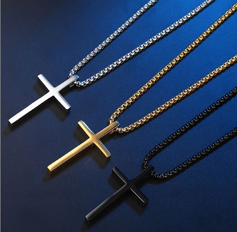 Celebrate your faith with our Personalized Engraved Cross Necklace, perfect for men, women, boys, and girls. This custom jewelry piece is ideal for baptisms, Catholic confirmations, Christian birthdays, and other special occasions. Crafted from high-quality steel, the necklace comes in silver, gold, and black finishes.